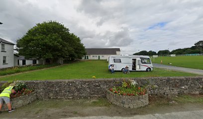 Positive experience: Campervan / Motorhome Parking Available. Good position in the centre of town. Plenty of room for tables and chairs and maybe a canopy / windbreaker. Water available from taps behind the community building and on the fence of the football pitch. Public toilets and cold beach style shower at the pier a couple of minutes walk away. Pubs, takeaway vans and other food options. Parking on football field which is mainly level grass. Worth the €10 fee collected in the evening by a local couple. We would return.